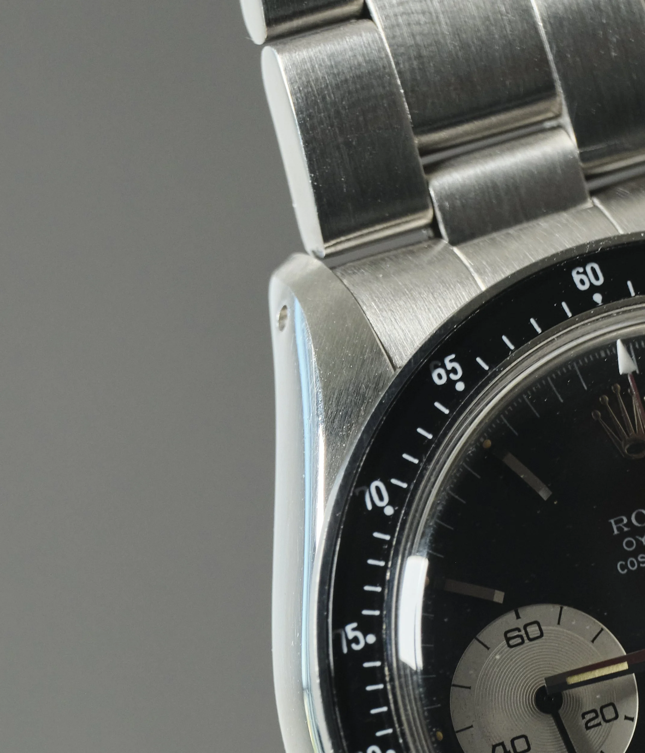 APPEARS TO HAVE NEVER BEEN POLISHED SHOWING LIGHT WEAR CONSISTENT WITH AGE. LUGS REMAIN THICK AND EVEN WITH ORIGINAL SHARP EDGES. MK2 BEZEL IS IN PERFECT CONDITION. ORIGINAL MK2 PUSHERS.